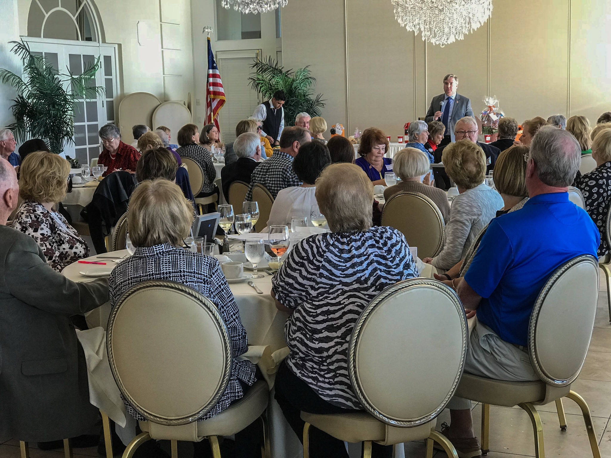 The Fall Luncheon was attended by sixty colleagues from our member chapters (Commack, Elwood, Harborfields, Hauppauge, Huntington, Kings Park, Northport, Port Jefferson, Port Jefferson Station, Sachem, Smithtown and Three Village). VOTE/COPE Chair June Smith gave an update on NYSUT’S phone campaign to defeat the Constitutional Convention proposition. Retiree services Consultant Joan Perrini highlighted the upcoming Regional Retiree Conference on November 2nd. RC 23 President Ellen Burke urged members to continue phone calls and to attend the “Pizza and Post Card” party at the NYSUT office. ED 52 Director Rosemary Catanzariti emphasized the need to donate to VOTE/COPE and the possible financial impact of the current Agency Fee Supreme Court case. Guest speaker Peter Verdun stressed the importance of getting the vote out on November 7th. After a great meal and informative speeches, we held raffle of gifts donated by each chapter. The lucky winners were Barbara Schubart, Kathy Hynes, Mary Kay, Rita Root, Judy Bensimon, Carol Crowley, Carolyn Bogart, Elaine Gish, Fran Martin, Joyce Duck and Ana (no last name) from Commack.